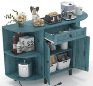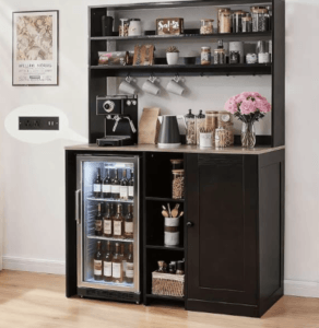 For serious coffee lovers who want a full café experience at home, a coffee bar cabinet with built-in space for a minifridge makes life convenient. You can store milk, creamers, or cold brew right next to your main setup. Most of these have adjustable sections to fit different fridge sizes.